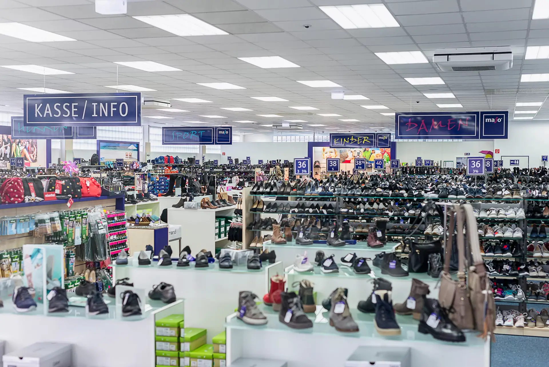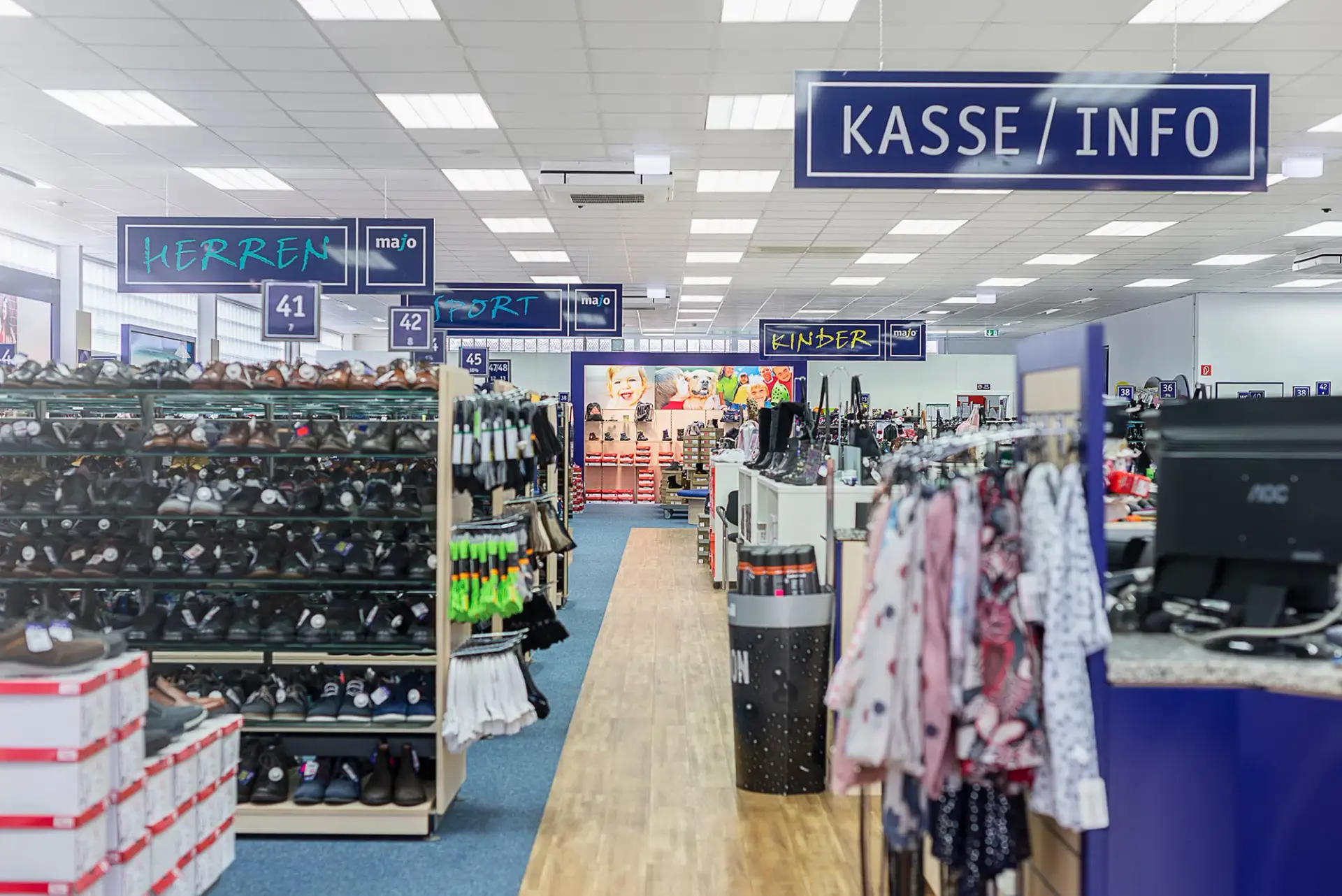 „Herzlich willkommen bei majo in Lollar. Wir bieten Dir eine riesige Auswahl an Markenschuhen zu dauerhaft günstigen Preisen. Unser Team ist für Dich da und berät Dich gerne.“